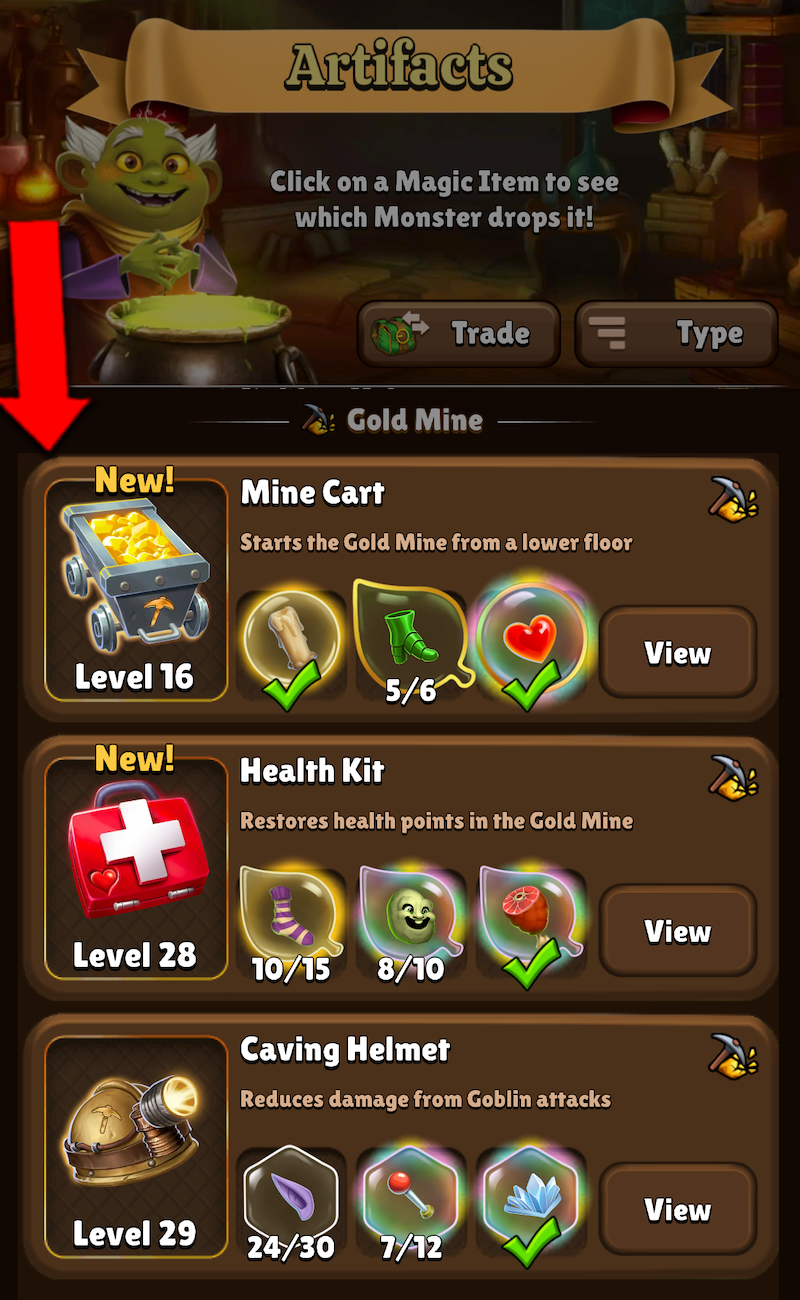 Several Artifacts can help you greatly in the Gold Mine, such as: