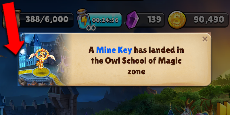 When a Mine Key appears, you’ll also see a notification at the top of the screen.