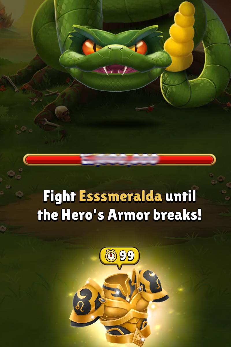 Your Hero's Armor protects you against Lady Fang's attacks in battle. But be careful... It's only available for a certain amount of time. The battle will be intense... give your best to defeat Esssmeralda when you can!