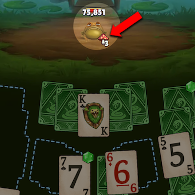 A monster is Shrunk when its size is reduced. A mushroom icon and a turn counter will appear in front of it. The counter indicates how many card turns remain before the Shrinking effect wears off (see the example below).