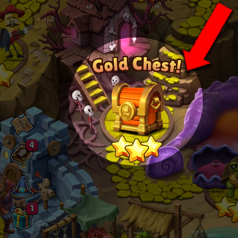 Some battles on the map offer Gold Chests as an extra reward, which is visible in the battle preview.