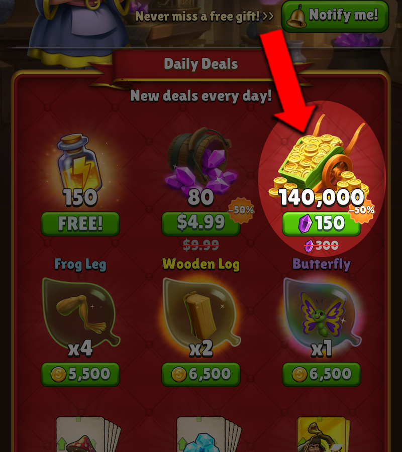 You also have a chance to obtain free Gold in Daily Deals. Keep an eye out for the Deals in the Shop as they are refreshed every day. Don't miss out on your golden opportunity to take advantage of these offers!