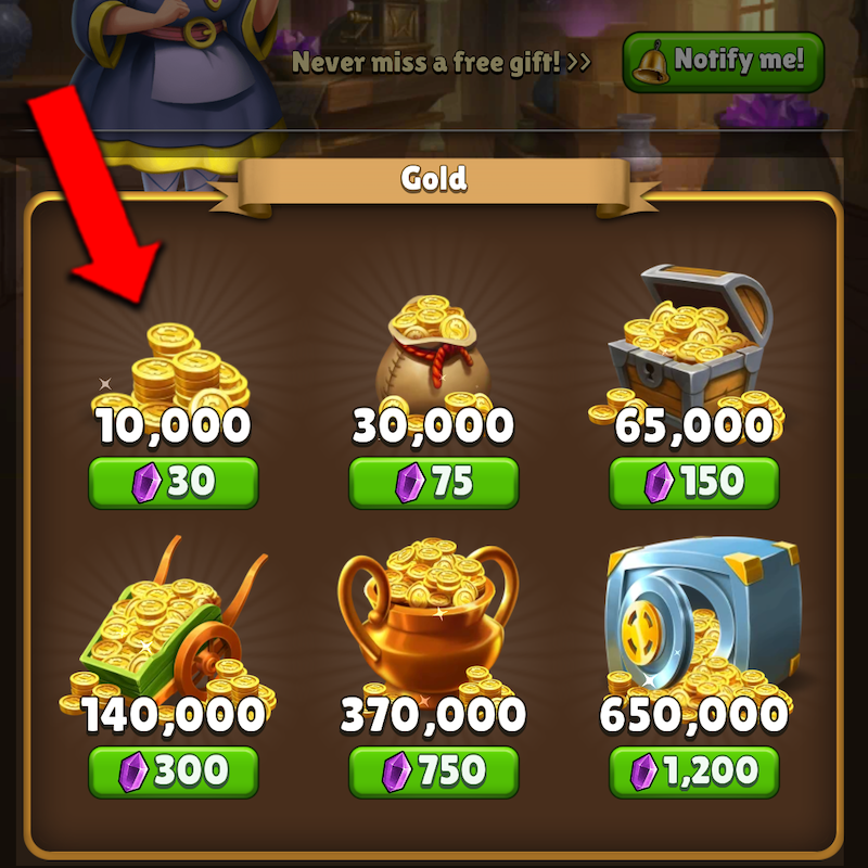 Click on the Shop icon and you'll have a treasure trove of Gold available at your fingertips!